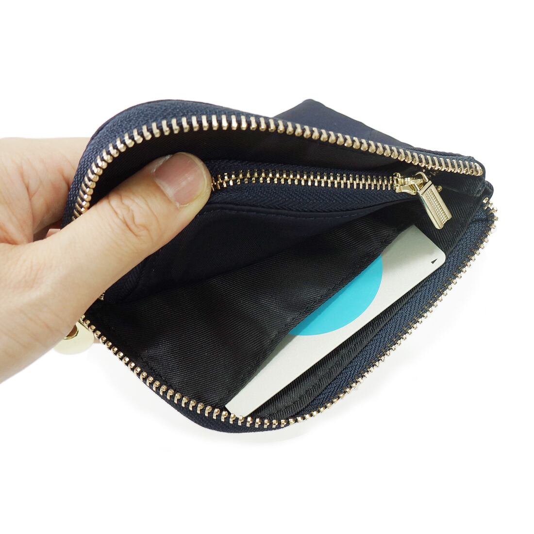 開口部はL字型で開けやすくなっていて、中には小銭も整理しやすいように、ファスナー付き小銭入れが付いてます。